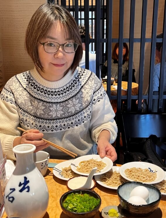 最近の楽しみは、夫との昼飲み!京橋などの立ち飲み屋で、一杯飲んでは次のお店へ…とはしご酒をするのが最高のリフレッシュです。「5000円で何軒行けるか?」なんてチャレンジをすることも(笑)。アニメ鑑賞や日帰り温泉でほっこりする時間も大切にしています。先日は美味しい蕎麦を食べに出石まで足を伸ばしてきました。